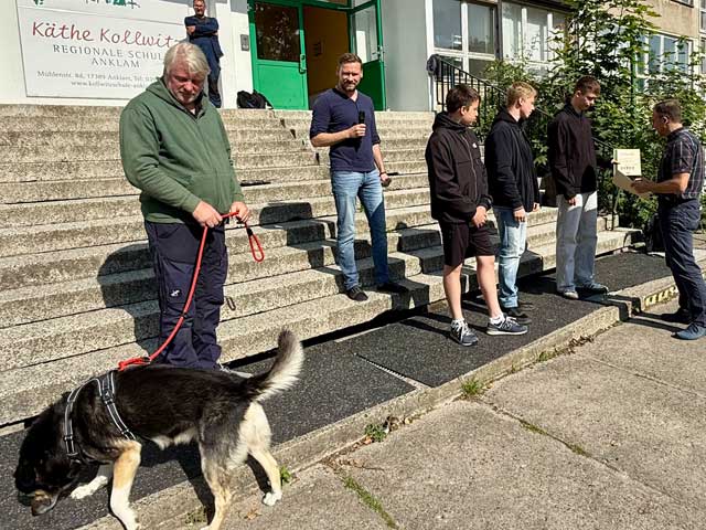 Spendenübergabe am 5.7.2024 hat die Schwulwerkstatt den Tierhof nach Labömitz besucht.